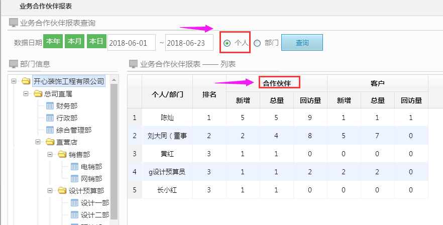 二:業(yè)員及各部門員工添加的合作伙伴可根據(jù)數(shù)量進行排名