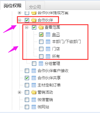 系統(tǒng)設(shè)置---部門/用戶--崗位管理--營銷管理--合作伙伴--查看范圍