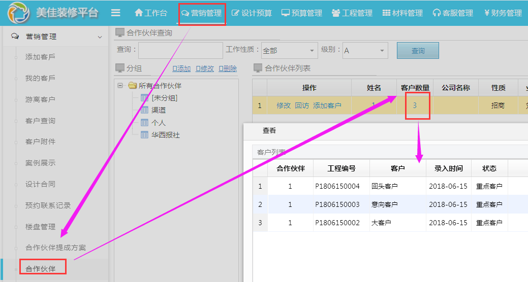 “合作伙伴 ” 作為裝修公司的戰(zhàn)略伙伴,是實現(xiàn)共贏的必備條件之一。近期美佳技術(shù)針對客戶提出的這一需求加班加點的開發(fā)了相關(guān)功能,具體內(nèi)容大家動動手指往下拉哦?。?!