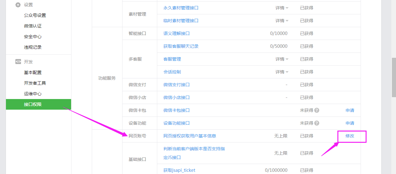 2、接口授權(quán)。授權(quán)回調(diào)頁(yè)面域名,需填寫:api.zxerp.net.cn