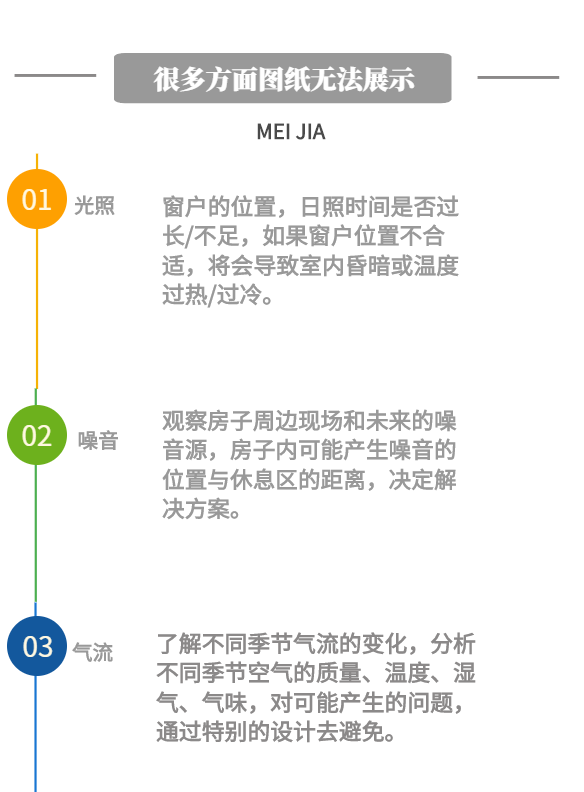有很多東西是圖紙上無法體現(xiàn)的,因?yàn)榉课莶晒?朝向如何、是否存在噪音、周圍的環(huán)境狀況等等只能通過現(xiàn)場(chǎng)才能觀察到,有一些不好的因素可以通過設(shè)計(jì)來適當(dāng)規(guī)避。