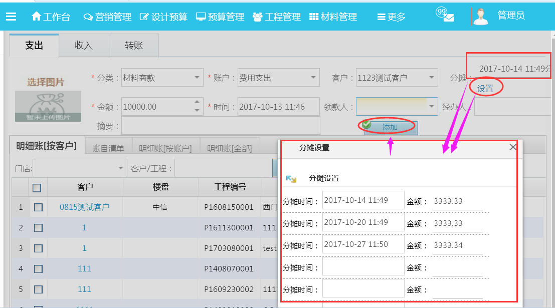 2:設置好分攤時間最后點擊添加,分攤金額即可生成。