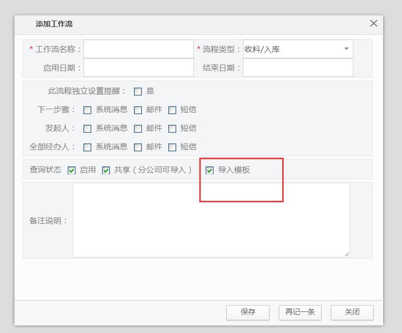 第二步驟:系統(tǒng)設(shè)置---工作流管理---收料/入庫(完成流程完善,可直接導(dǎo)入模板)